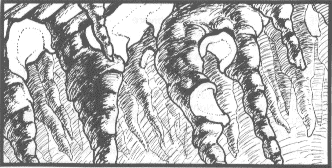 Shovelmouths are normally quite harmless, but if a herd panics, they will stampede. If a character is unfortunate enough to be caught in a stampede, he will take 2d10 damage from every shovelmouth that trampels him. You must use your discretion to determine the number of shovelmouths that may trample a character. In narrow, confined areas, the panicked shovelmouths will have a difficult time avoiding characters, while in a more open area, they will attempt to run around an object as large as a man.