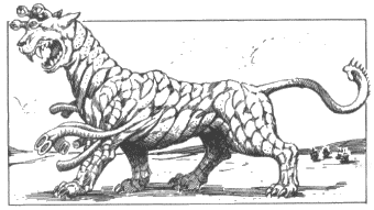 DESCRIPTION: The quickdeath is the ultimate land carnivore. This creature can propel itself at 100 kilometers per hour with its great legs, which resemble those of a jaguar. Quickdeaths keep the claws on these legs razor sharp, using them to attack prey as well as for climbing. Three sets of smaller, tentacle-like limbs ending in suction cups are attached to the quickdeath's sides. It uses these limbs to catch unwary prey and stuff the unfortunate creatures into its digestive maw. Any creature in the maw takes 10 points of damage until it frees itself (as if breaking free from a hold).